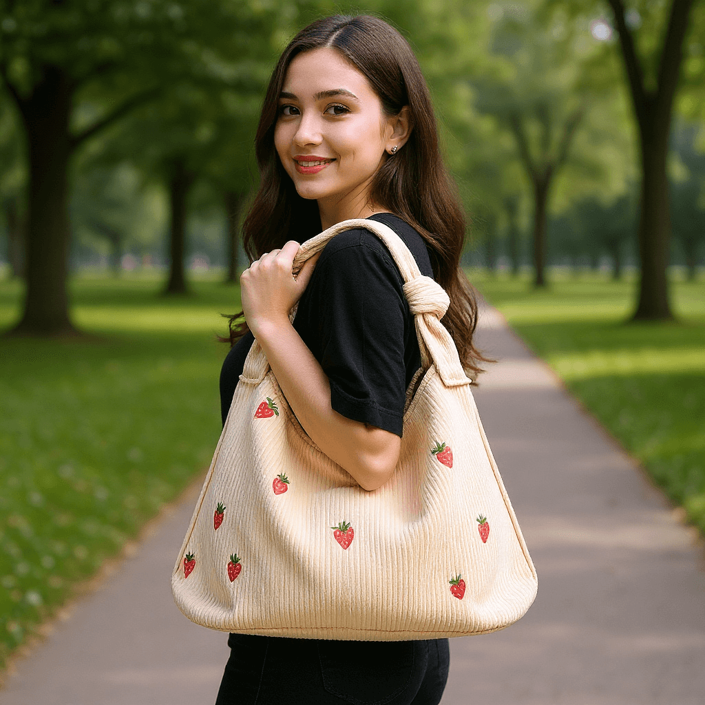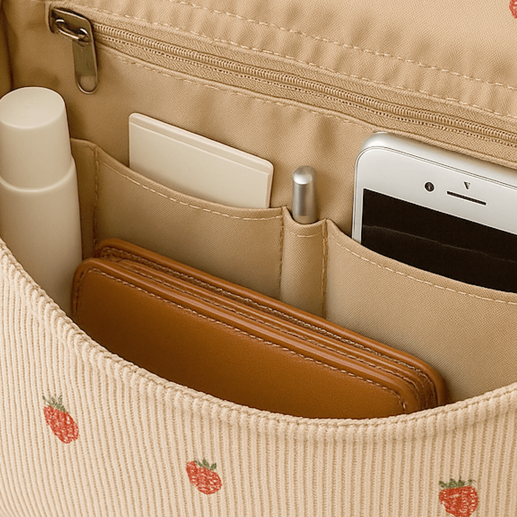 This charming cotton corduroy printed shoulder bag embodies the spirit of youthful optimism and casual sophistication. Designed for the girl who moves through life with confidence and grace, this bag combines practical functionality with playful aesthetics that never fail to bring a smile.