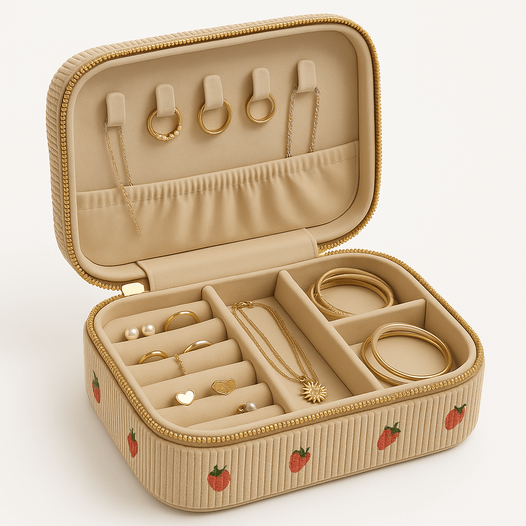 This exquisite and elegant cotton corduroy printed jewelry storage bag is carefully designed for modern women who pursue refined life and cherish beautiful accessories. Made from top-grade cotton corduroy fabric with fine handcraft treatment, it not only feels silky smooth but also provides excellent dust-proof and protection performance. The printed designs on the bag combine classic and modern aesthetic elements, with elegant patterns and exquisite color combinations perfectly interpreting women's gentle charm and fashion taste. The storage bag interior adopts professional jewelry-grade design standards, with 12 different-specification compartments for categorizing rings, earrings, necklaces, bracelets and various jewelry, avoiding mutual friction damage. Velvet lining is soft and delicate, providing the gentlest care for precious jewelry. Built-in portable makeup mirror facilitates anytime grooming and jewelry trying. Safety lock design ensures jewelry security, allowing confident carrying even during travel. This jewelry storage bag is not only a professional tool for jewelry protection but also a symbol of women's elegant lifestyle, ensuring every piece of jewelry receives the best protection and making every wearing full of ritual sense and beautiful memories.