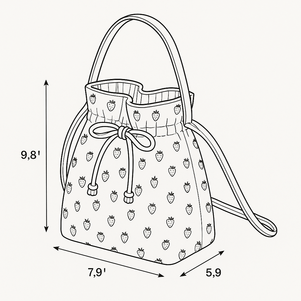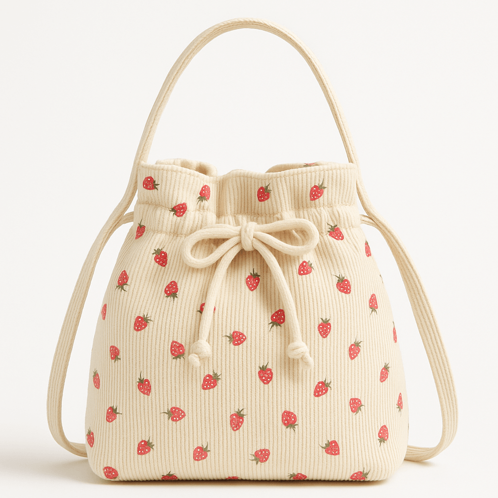 Soft cotton corduroy fabric with creative printed design showcasing unique fashion aesthetics. Bucket shape combines practicality with beauty, personality expression for modern women who love fashion.
