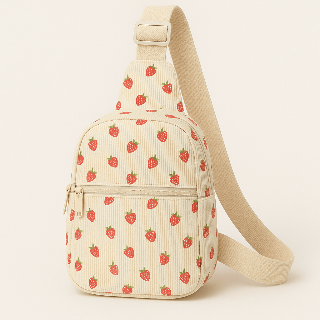 Lightweight cotton corduroy material with vibrant printed design showcasing youthful fashion attitude. Hands-free convenient design, fashionable first choice for young women pursuing free lifestyle.