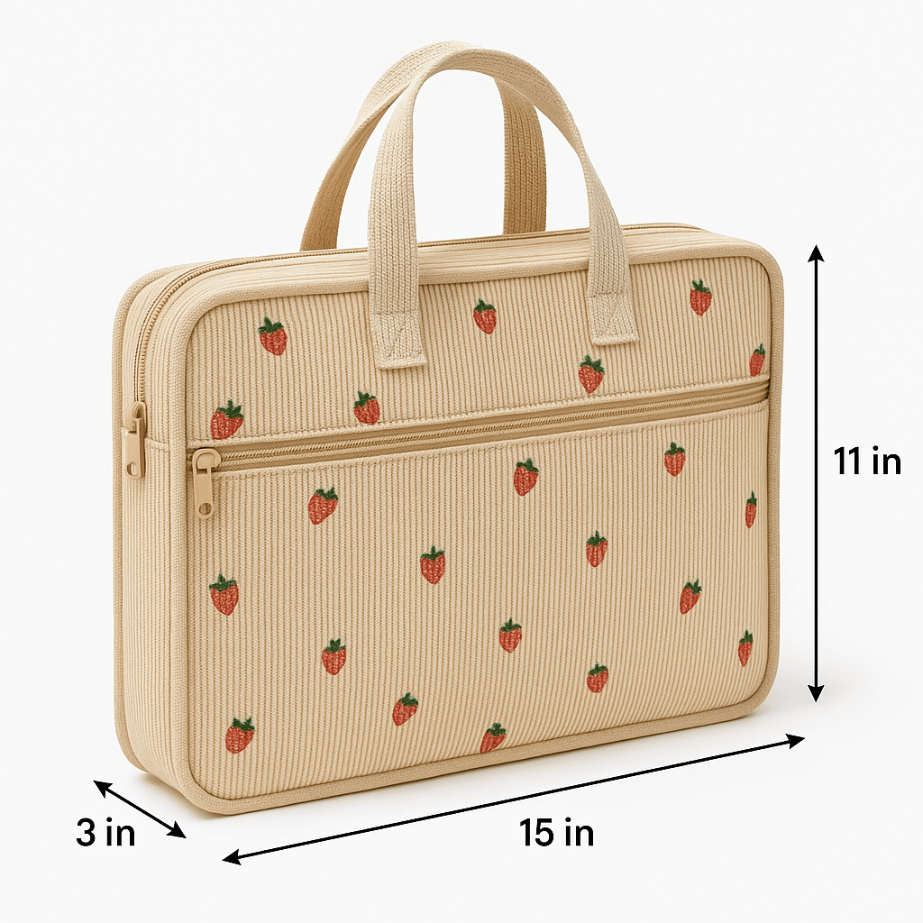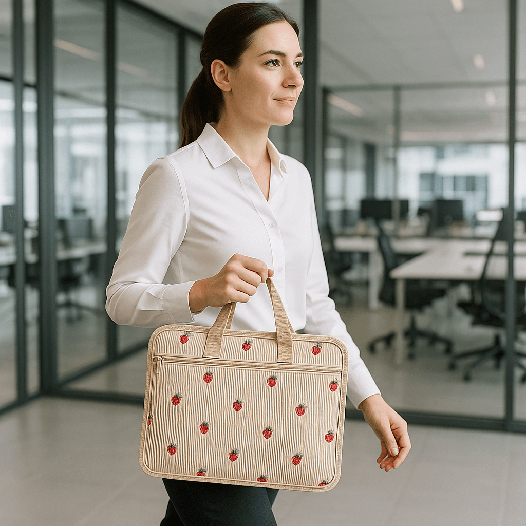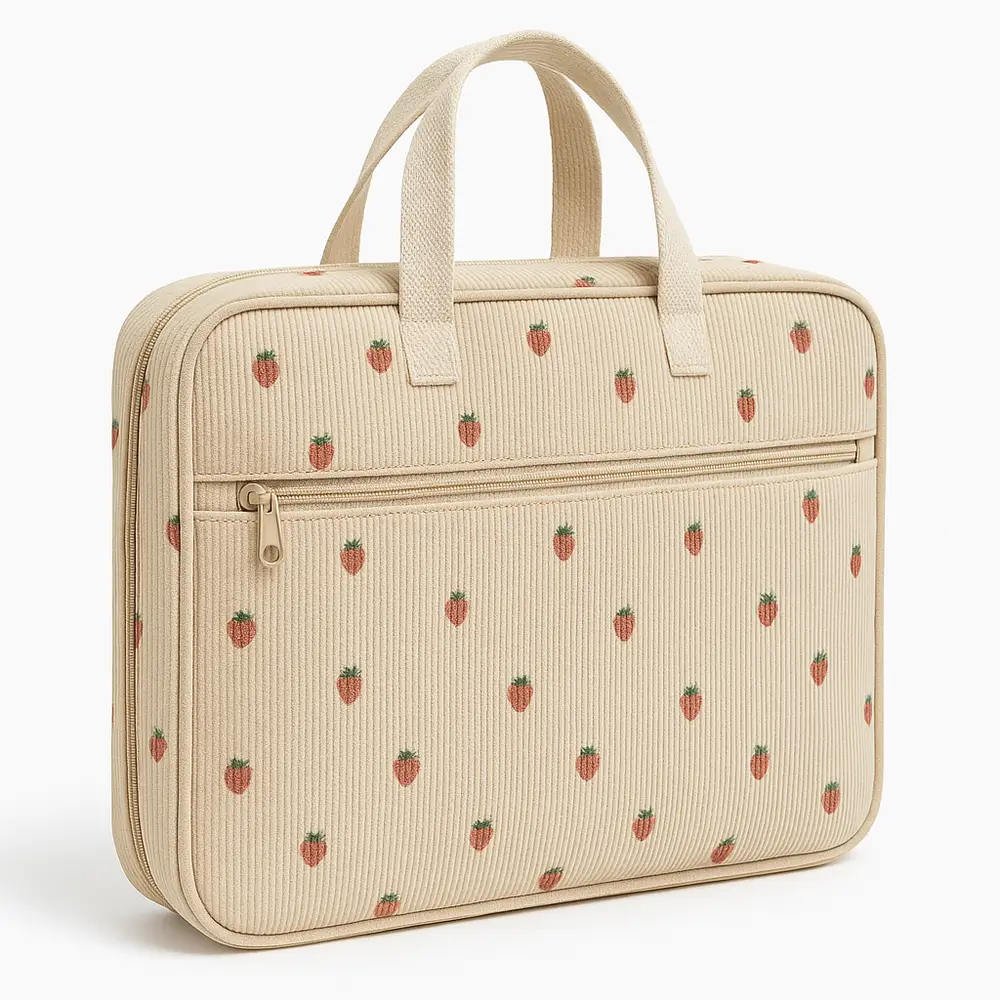 Professional cotton corduroy craftsmanship with simple printed design reflecting young workplace fashion. Multi-layer compartment design makes document organization more efficient, fashionable office companion for modern workplace newcomers.