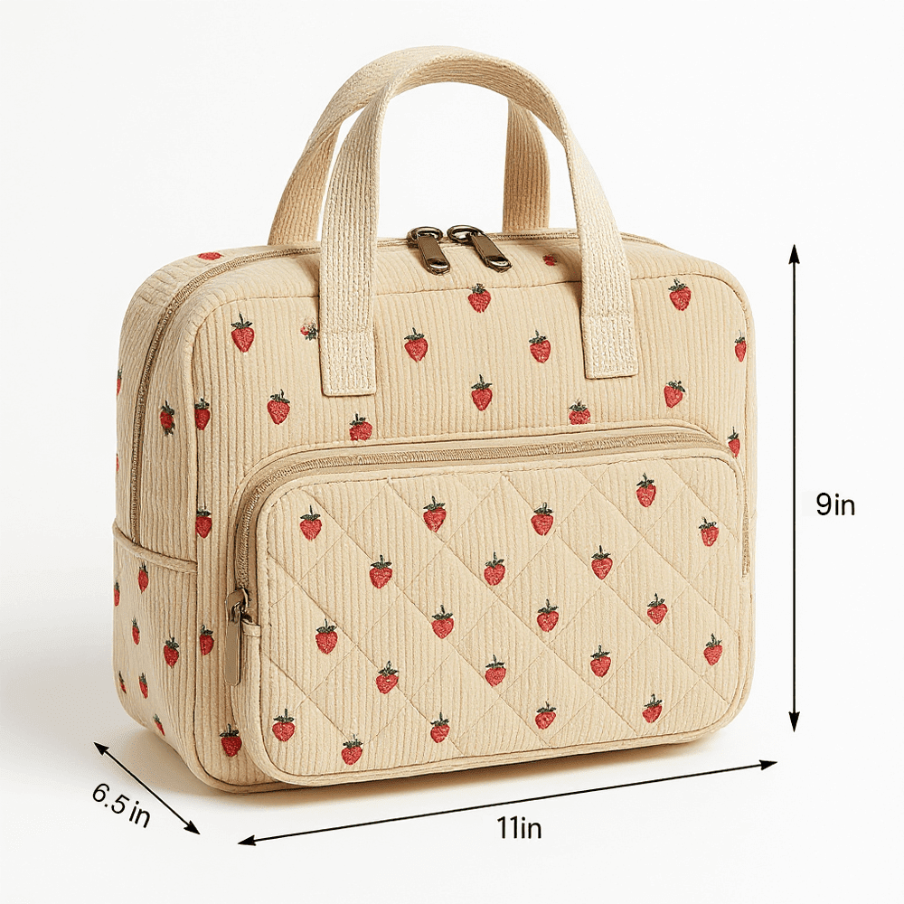 Cotton Corduroy Printed Portable Travel Toiletry Bag