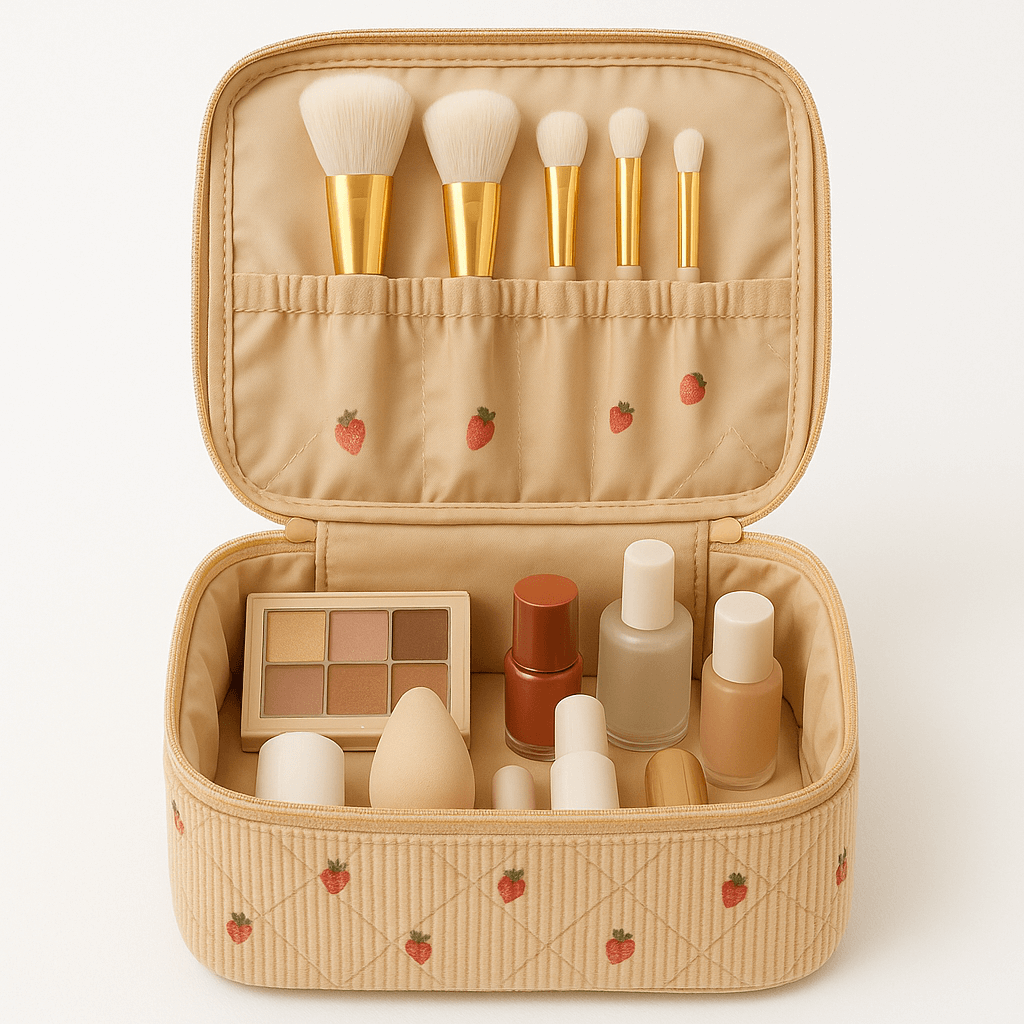 This professional and fashionable cotton corduroy printed makeup brush bag is tailored for makeup artists and beauty enthusiasts who pursue professional makeup techniques and quality tools. Made from selected cotton corduroy fabric with professional stain-resistant treatment, it not only maintains the comfortable characteristics of natural fibers but also provides excellent durability and easy-cleaning performance. The printed designs on the bag combine modern makeup aesthetics with young fashion elements, with simple yet sophisticated pattern designs reflecting both professional competence and personal taste. The makeup brush bag adopts classic roll-up design, with 12 carefully designed brush slots for separately storing different functional and sized makeup brushes, from foundation brushes and blush brushes to eyeshadow brushes and lip brushes, each brush having its dedicated position, avoiding bristle mutual friction damage. Anti-static lining effectively protects bristle softness and elasticity, extending makeup brush service life. Adjustable tie design ensures tight roll-up fixation while facilitating carrying and storage. The roll-up portable design allows makeup artists to unfold work anytime, anywhere, very convenient whether for studio shoots, wedding venues, or daily outings. This makeup brush bag is not only a professional storage solution for makeup tools but also an embodiment of makeup professional spirit, making every makeup creation full of professionalism and artistry.