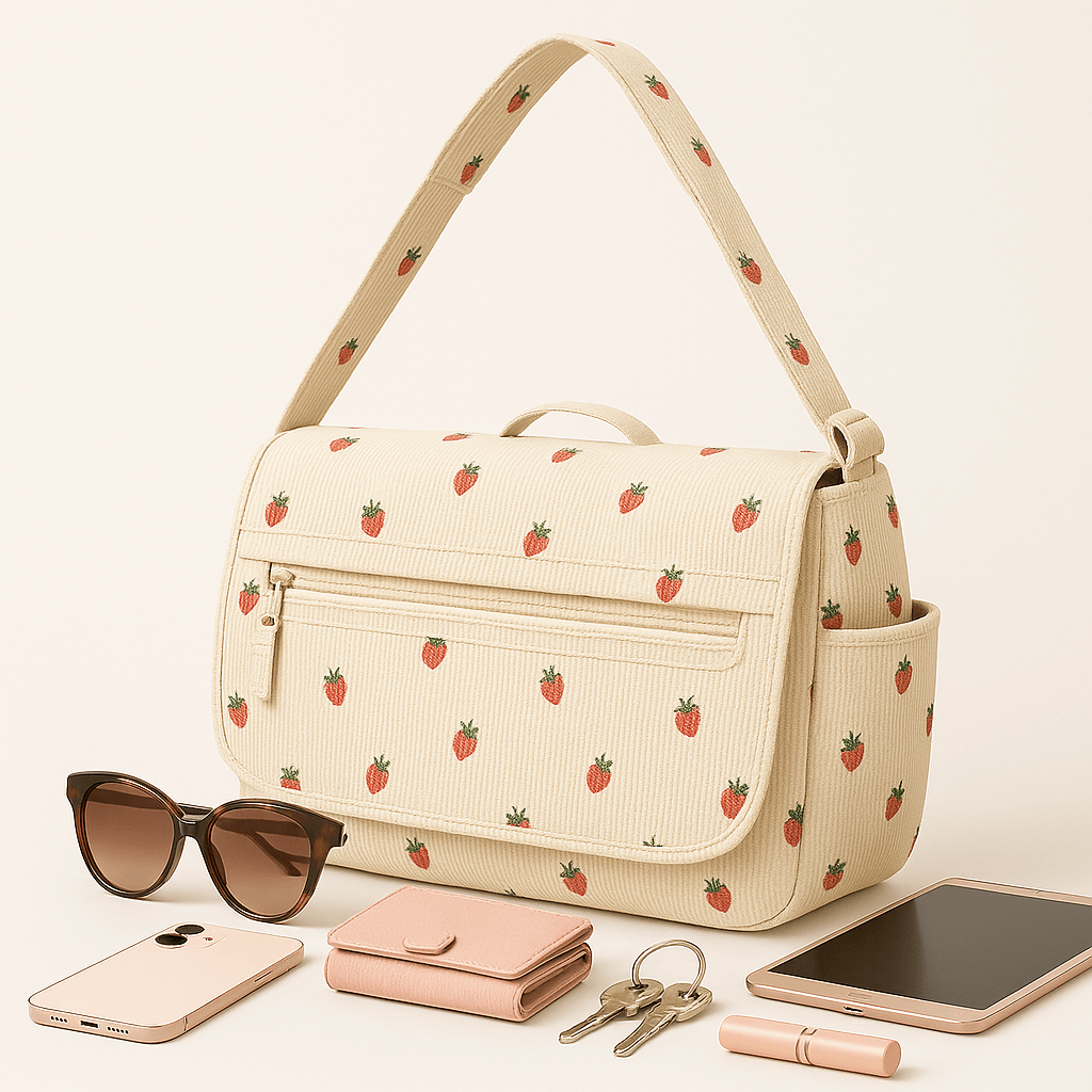 Nostalgic cotton corduroy craftsmanship with vintage printed patterns recreating classic messenger style. Practical large capacity design meets daily needs, perfect choice for fashion women who love vintage culture.