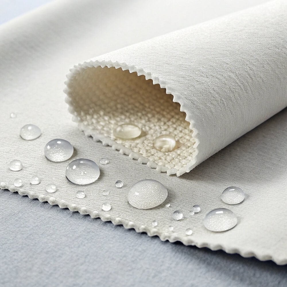 PEVA + Cotton50 - 90 g/m²Good10,000+ mm100% waterproof. Soft cotton backing. Ultrasonic bonding.